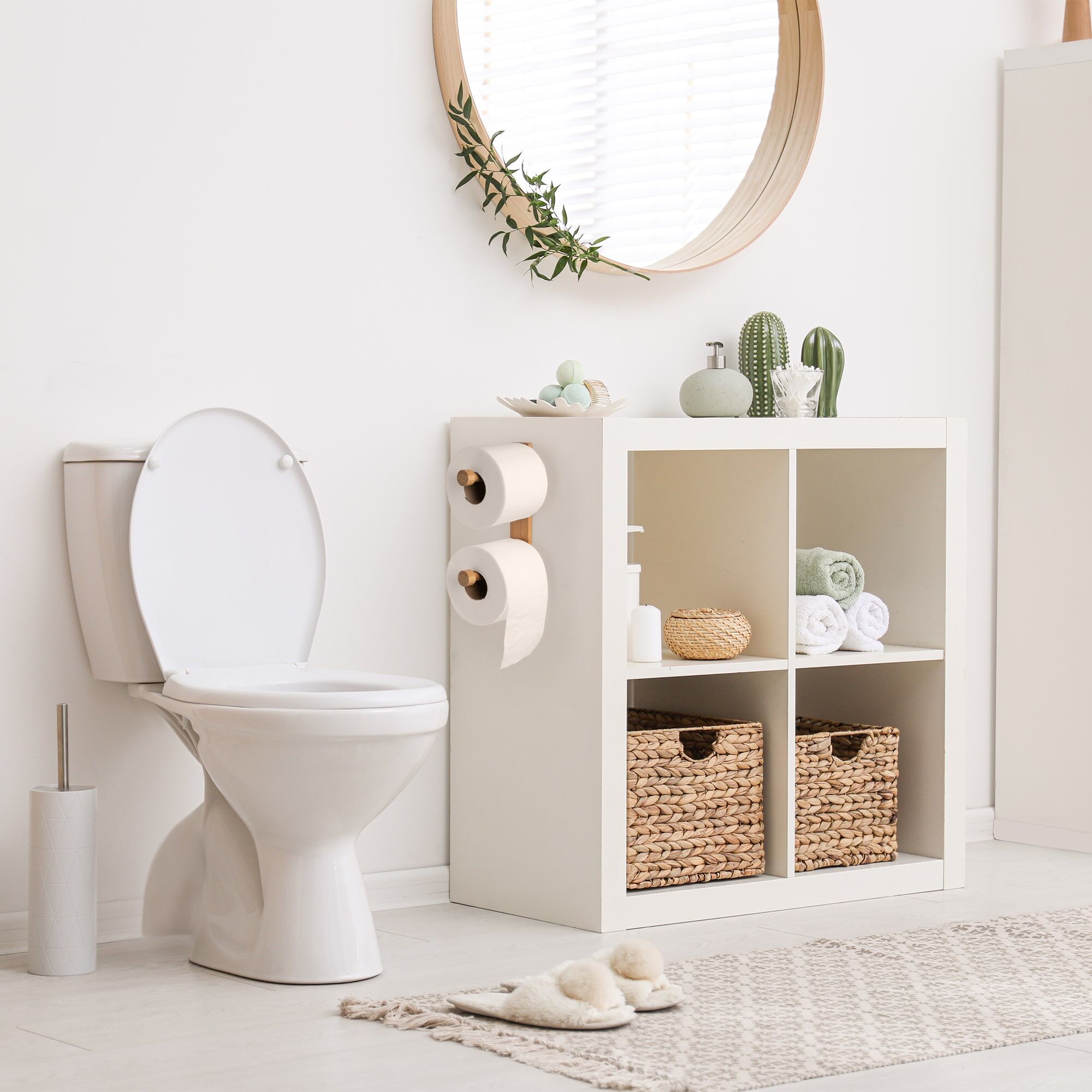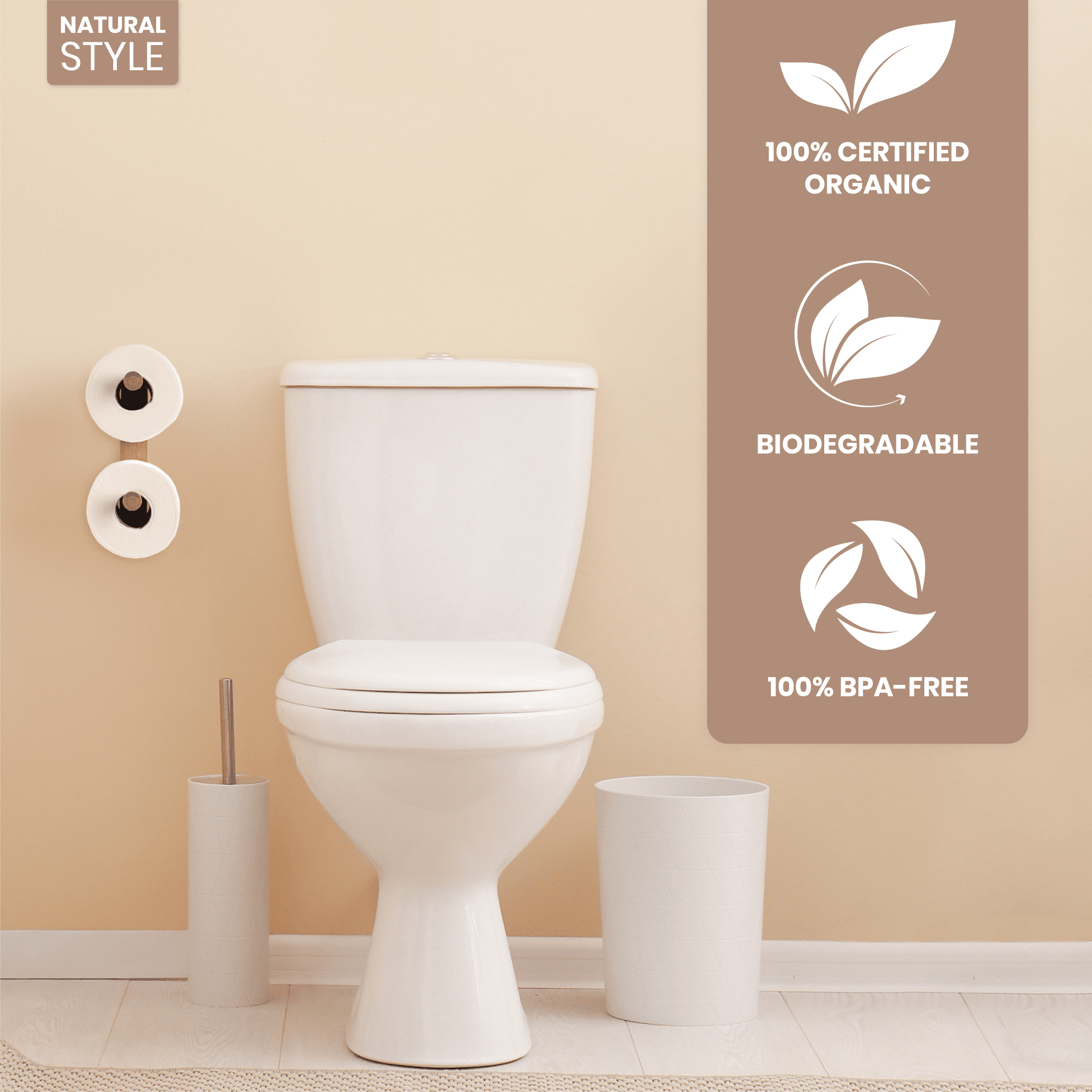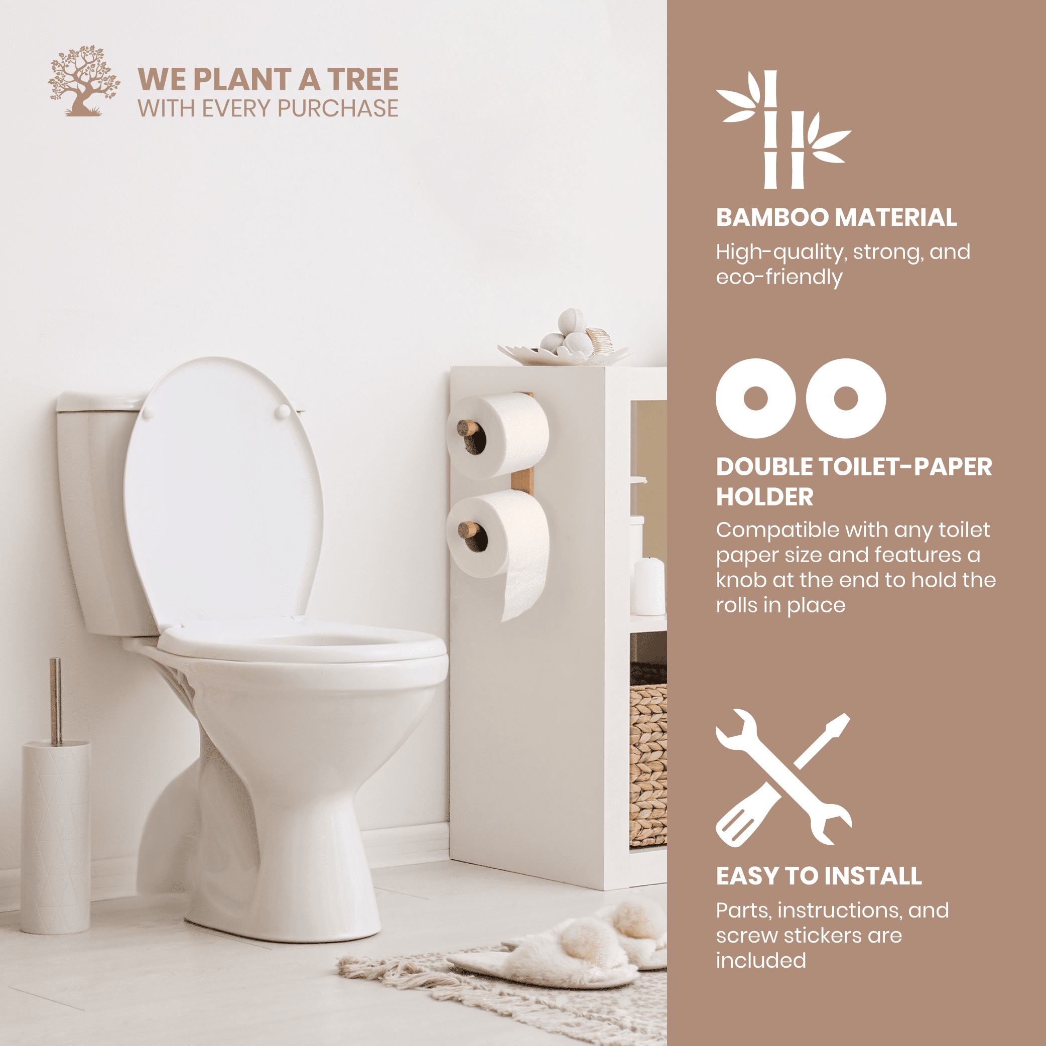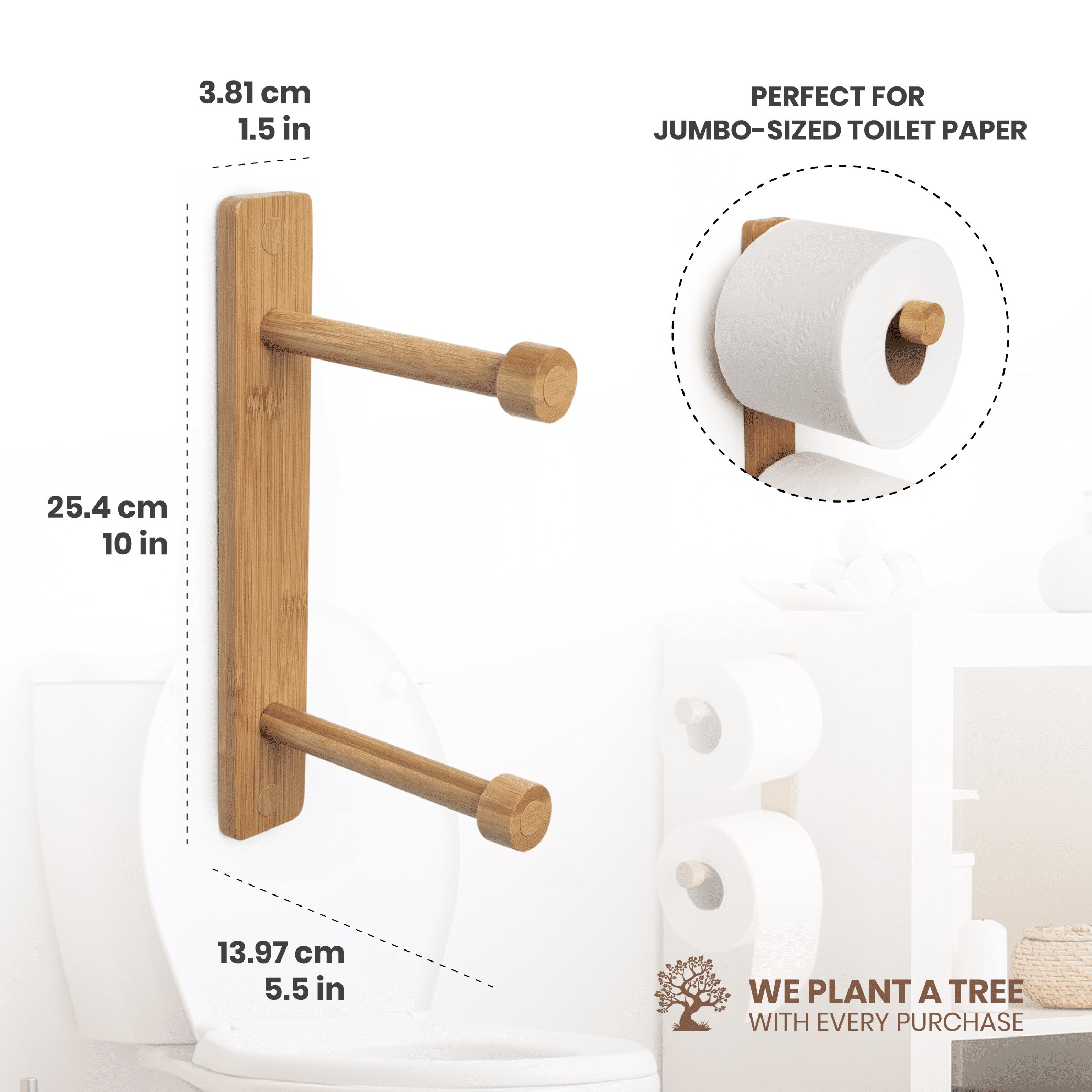 - DECORATIVE, SLEEK, DESIGN: The simple, clean-cut design of this bamboo toilet paper holder will add a subtle hint of style and taste to your bathroom decor. In addition, the light wooden look will complement other areas of your home as well, making it the perfect versatile piece.